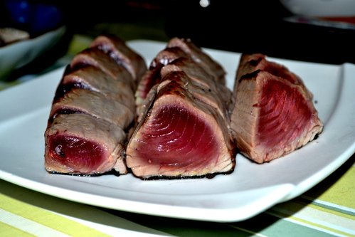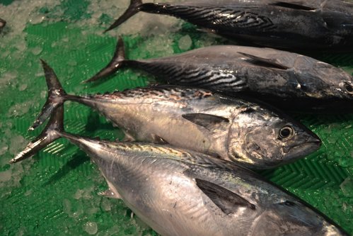 這是台南最常見的鰹魚,冬天可以在安平港防波堤釣到,近海流刺網漁民也能捕獲,照片裡的鰹魚來自小型漁船用手釣方式一尾一尾捕獲,品質相當好,在清明之前油脂肥厚,生魚片滋味勝過鮪魚。鰹魚的營養價值相當高,但就像牛肉容易因為烹調過度而老化,所以掌握火候很重要,切薄一點用熱油快速煎熟比較能保存肉汁。